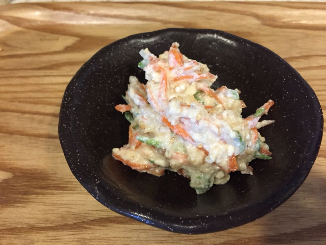 水切りした豆腐の上に人参を乗せ、その上に甘酒を大さじ2くらい乗せる